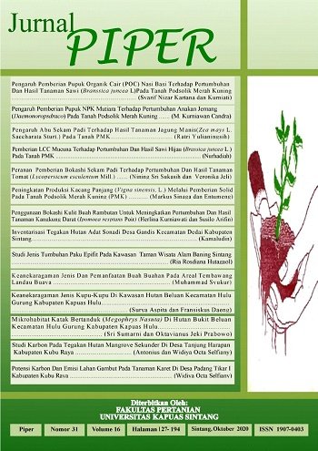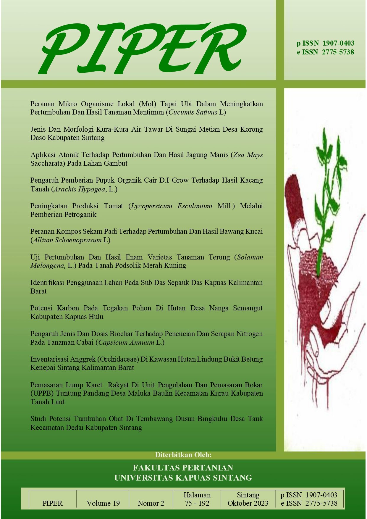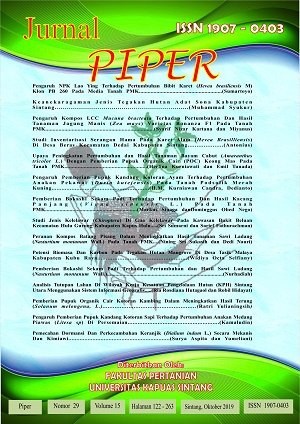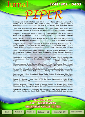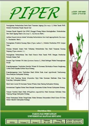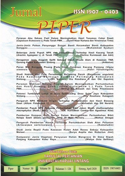 Vol. 16 No. 30 (2020)PIPER merupakan salah satu media/wadah untuk mengembangkan kemampuan ilmiah civitas akademika Fakultas Pertanian, terutama kemampuan berkomunikasi secara tertulis sesuai kaidah-kaidah ilmiah. Sebagai wadah menampung hasil-hasil penelitian ilmiah, PIPER dapat memperkaya khasanah ilmu dan pengetahuan melalui berbagai aktivitas penelitian. PIPER diharapkan berisi konsep-konsep pemikiran yang objektif, kritis, maju, konstruktif dan mengandung upaya memecahkan berbagai masalah sektor pertanian terutama di wilayah Kabupaten Sintang, Kalimantan Barat maupun di Indonesia bahkan dunia. -